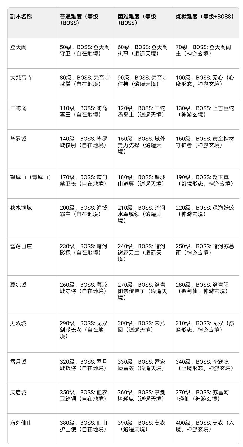 - 难度梯度:每个副本分普通、困难、炼狱三档,难度越高奖励越丰厚,支持重复挑战已通关难度。每个难度多人组队时两人需要3场战斗三人需要5轮战斗且BOSS换场时玩家保留状态和血量
