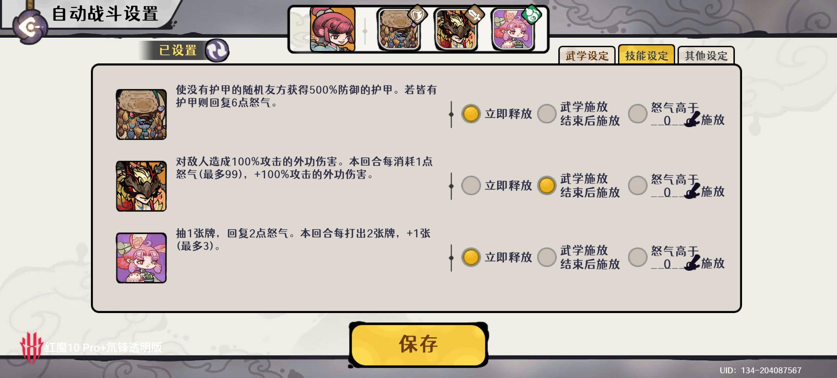 活动前夜,读完活动规则后我立即为自己制定了冲榜的策略,那就是选择【相信剑魔1拖2的能力】。在4系中,我用剑魔1拖2全自动挂机冲到了34层后立即停手,最后35层选择对应系常规阵容替换,这样手动1层即可。整个冲榜过程中轻轻松松,游刃有余。剑魔大人还是太强辣!![[表情_比心]](https://img.tapimg.com/market/images/a272560c8c816575cd8af72d0df6bbf1.png)