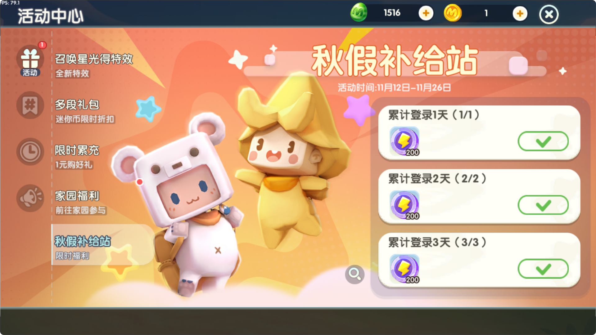 《秋假补给站》来袭,登录就送活力点福利,秋假一起嗨不停!