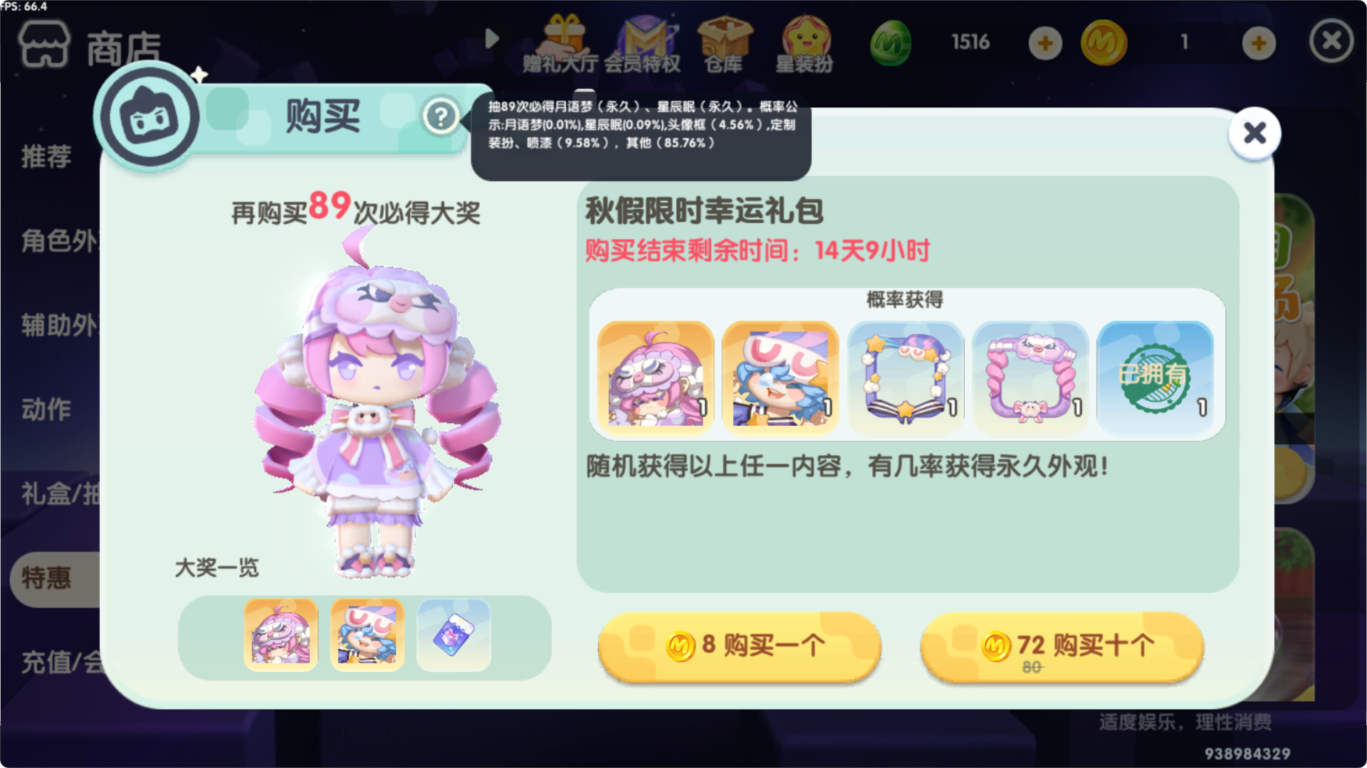 秋假限时幸运礼包-睡衣派对返场,随机获得以上任一内容,有几率获得永久外观,错过就没有机会了,速来解锁!