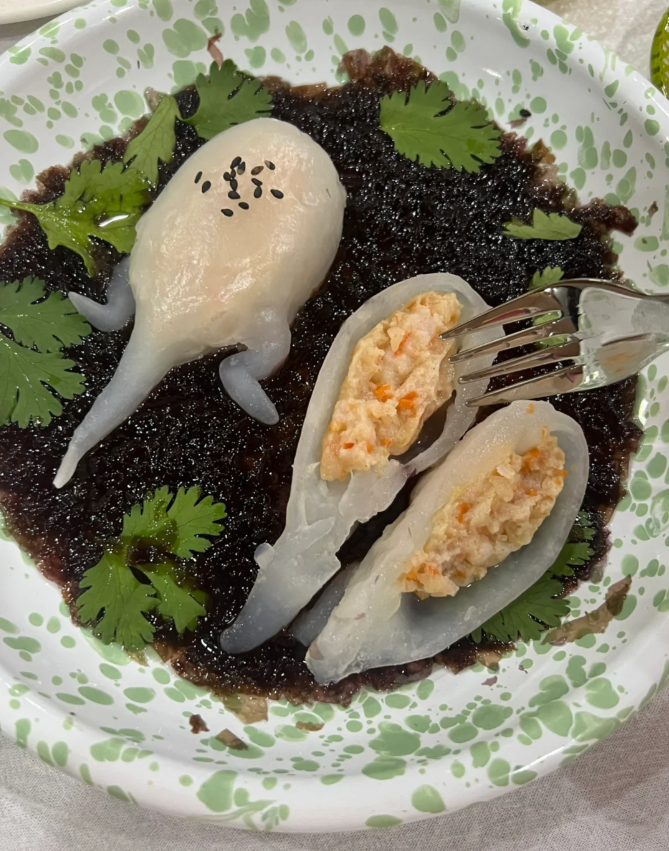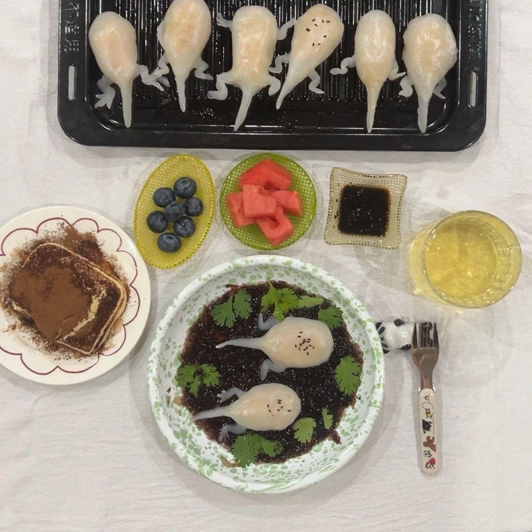 今天竟然有摆盘耶(主要是新买了漂亮的盘子… 虾饺但是半蝌蚪半青蛙,呃呃呃)