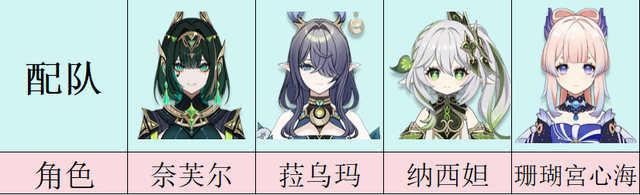 接着,12层上半队伍推荐,顺环境队伍推荐:菈乌玛、奈芙尔、爱诺、砂糖,适合有手法或者有1命菈乌玛的玩家玩。如果都没有,可以把砂糖换心海或者芭芭拉,
