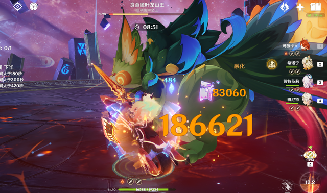 第二间是老朋友“贪食匿叶龙山王”,实战中,只需要用火元素打他的果实就能破机制,不难,主要还是看各位的角色练度。