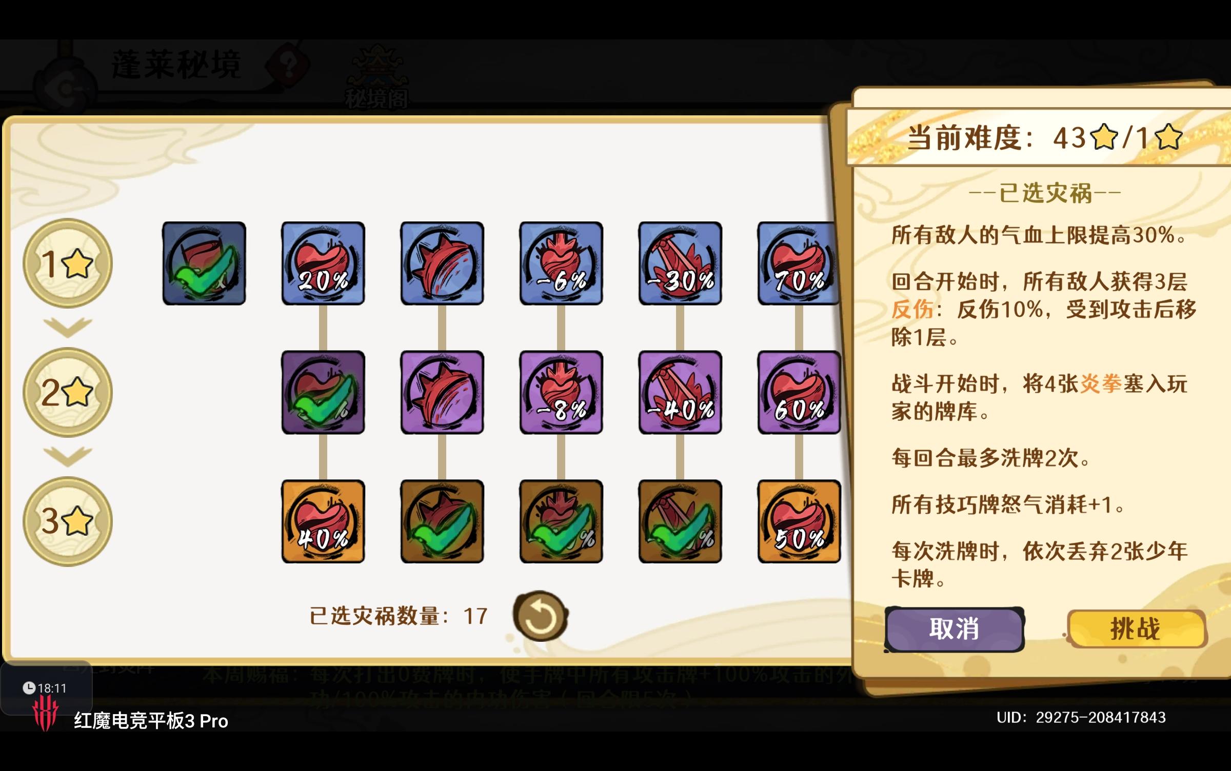 蓬莱秘境随着层数的提升,灾祸⭐级也需要逐步提升。