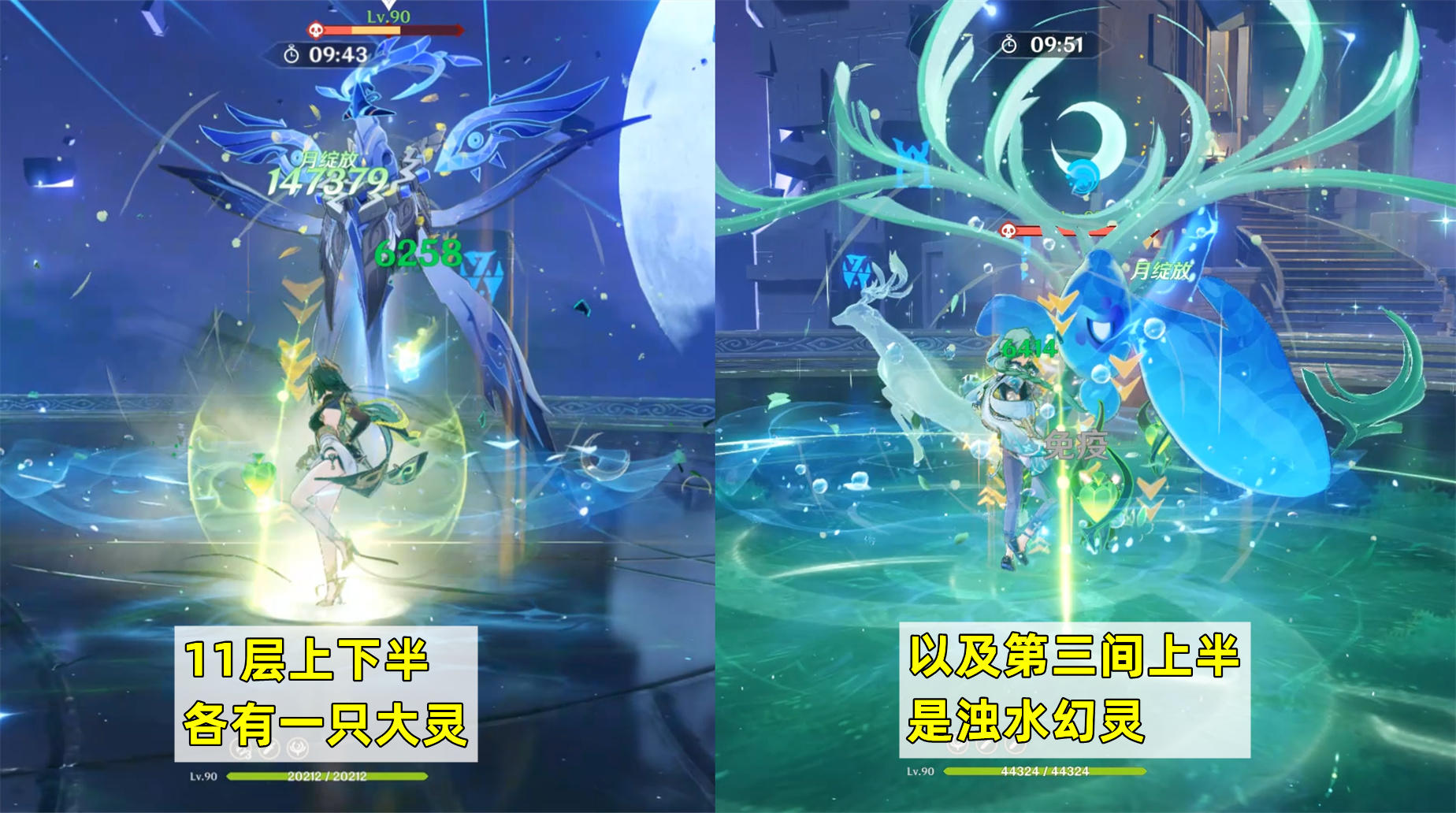 【怪物配置和机制应对】11层主要是考验对单输出练度。需要注意的是上下半各有一只大灵,以及上半第三间是浊水幻灵。