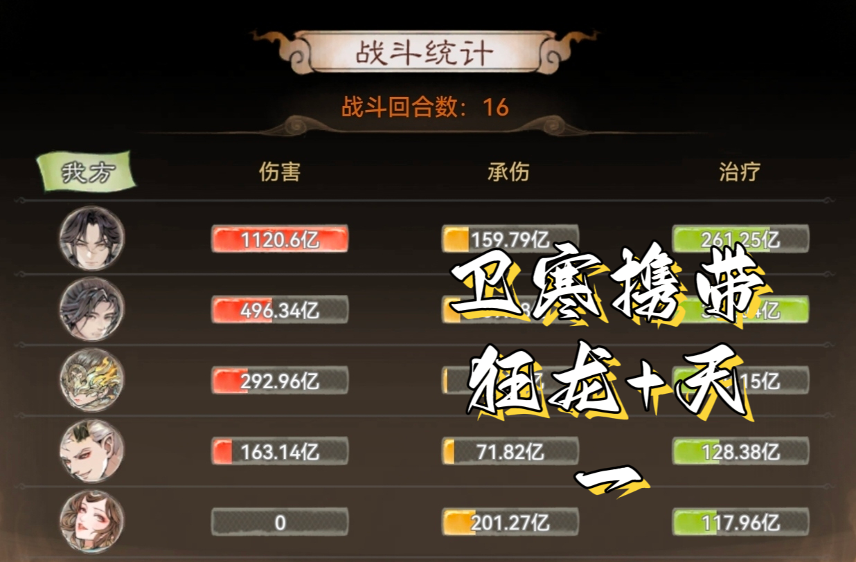 up主最开始通关时卫寒携带的是狂龙战典+山海梦间集,今天又测试了一下狂龙战典+天一剑典,这两种搭配都胜利了,因此卫寒是否需要携带山海梦间集可根据自身情况而定。