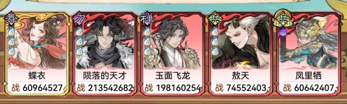 今天测试了一下不凑齐五行属性的搭配,结果两次都失败了,因此up主建议在携带凤里栖的情况下还是要将五行属性补齐。
