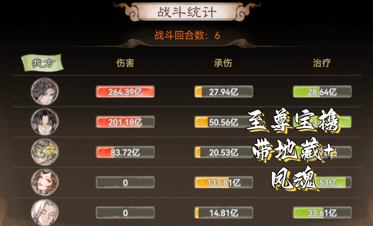 由于魔首领会挂很多减益状态,龙人大概率在第2-3回合就会倒下,up主就想是否能用萧辰替换掉龙人,经过了两次的测试(至尊宝补地藏以及不补地藏),结果并没有达到预期,所以up还是推荐携带龙人。