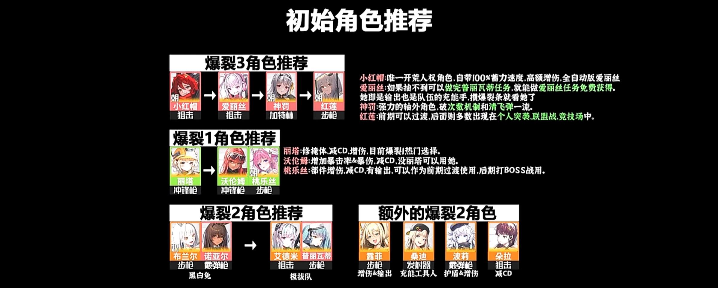 - 2. 实用换弹队:丽塔+艾德米+小红帽+普丽瓦蒂+神罚/爱丽丝。依靠艾德米与普丽瓦蒂的换弹队核心组合,搭配小红帽的高爆发,丽塔辅助减CD,适合各类常规关卡,没有黑白兔时可优先选择。