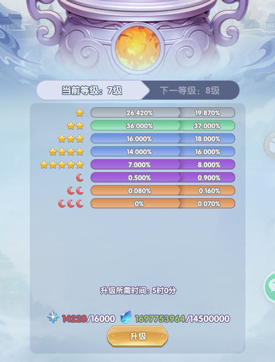 仙器的星级解读:器鼎等级7级对应你打造出来的仙器最高星级是7级。器鼎等级和仙器星级相关