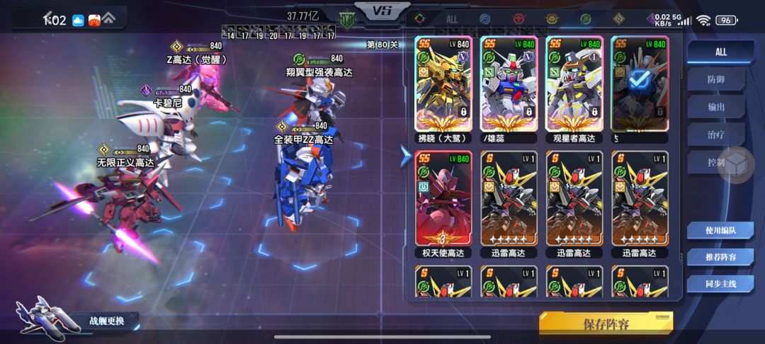 主力输出:z高达(觉醒),全装甲zz高达,00强化模组。