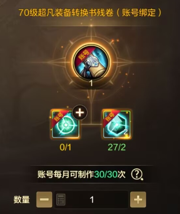 新版本有一个改动大家知道吗?就是之前每名玩家每月只能制作5张史诗升级超凡的随机卷,在新版本中调整为每个账号每月可制作30张升级卷,这就使得玩家获得超凡装备的门槛大大降低