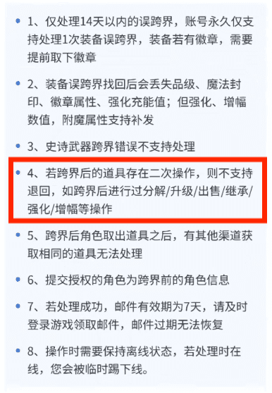 但是他不知道的是在跨界粒子找回第四条中,明确规定了所有的2次操作都不可以找回,所以除非你是真的误操作,不然是没有任何方法可以找回已使用的跨界粒子的,主播在做科普视频的时候也希望能够更谨慎一点,不要在自己都一知半解的时候,就直接发布虚假的信息