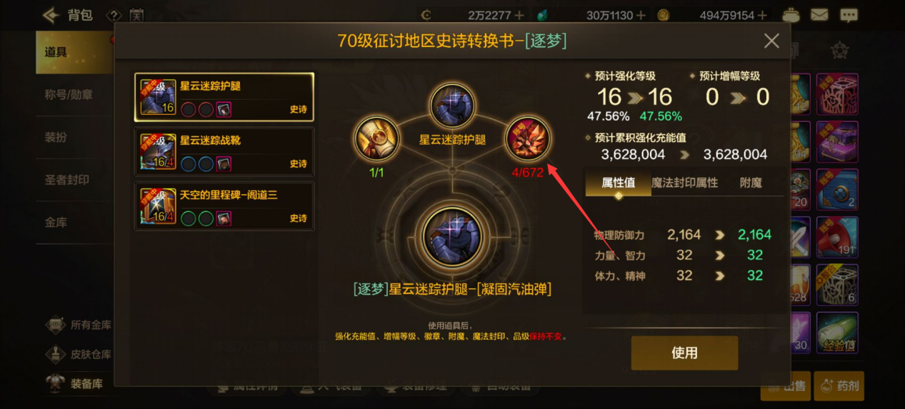 而使用转换书时,除了需求胚子装备,也需求大量“征讨地区史诗深渊精粹”材料,该材料在征讨之地所有副本当中均可掉落。