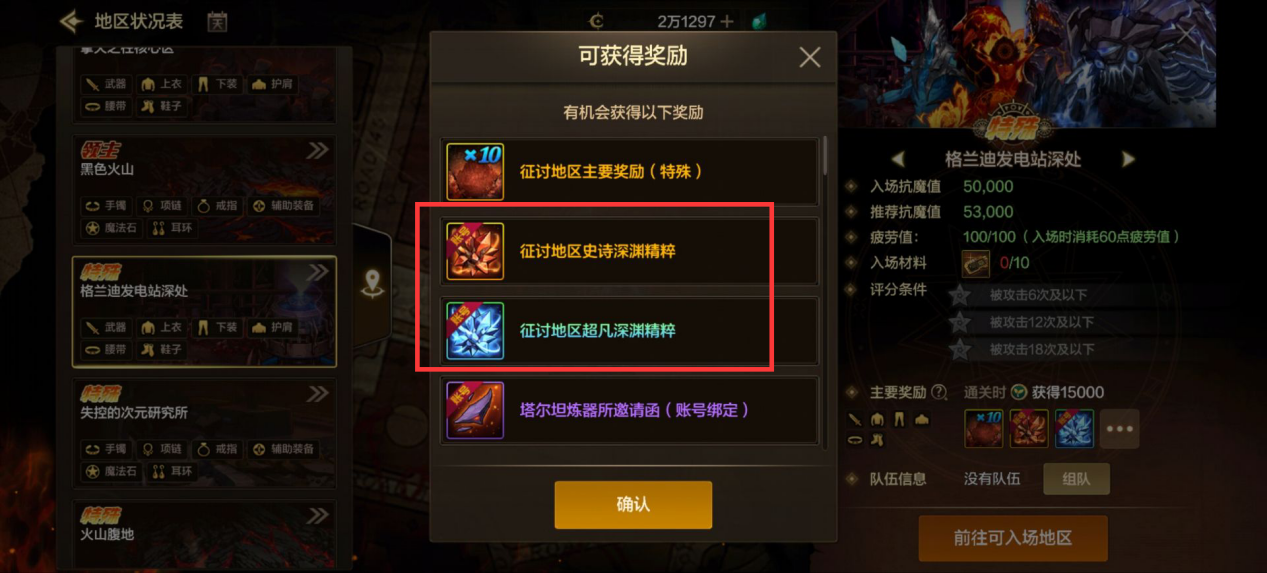 这就需要我们在日常游戏当中,多多参与征讨之地副本,从而满足大量的征讨地区史诗深渊精粹需求。