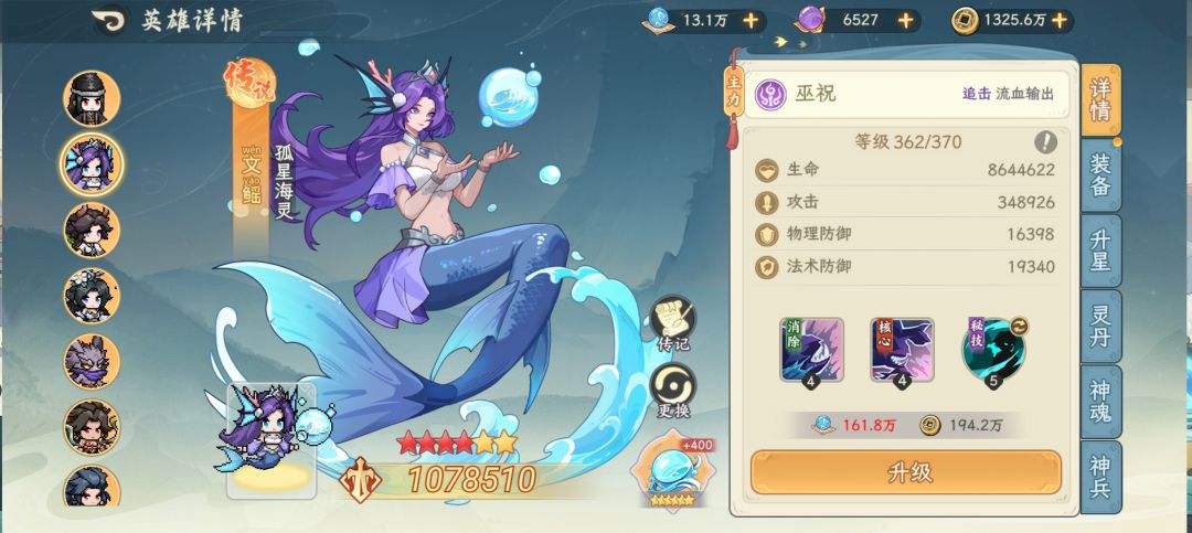 (归墟天柱)单体70w左右,神兵四,神兵词条有一个16吸血以上的词条,可以单推到越战斗力70w才会卡塔。