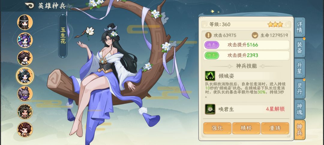 (二队配置)在吼拉满,文瑶拉满,神农六星二星专武的情况下,开启二队,竞技选天禄(输出队长)包子武罗,大世界排名奖励选黑无常嫦娥