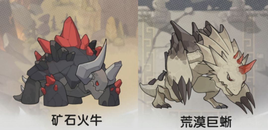 矿石火牛和荒漠巨蜥,这两种习性截然不同的生物却具有一个共同特征,那就是躯干上存在非常明显的矿石结晶。不论这是否是一种伪装方式,还是说是在成长过程中环境对形态潜移默化的影响,都指向了一点——山之国的矿物结晶在环境中非常常见,甚至是泛滥。