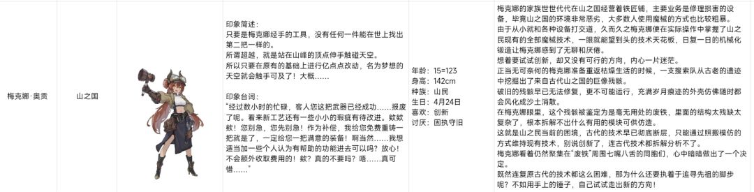 梅克娜的档案描述的基本都是烘托天才锻造师人设,可考证的内容极少。