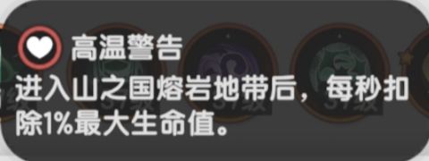 熔融山脉,火山熔岩在这里流淌不止,但这里却是山民们的优质矿场。毕竟对于山之国本地人来说,这里只是相对恶劣,连汗都不会出。(但对其他地区的人来说,这里能提供1%/s最大生命的逆天减益。这是真的能烤熟啊)