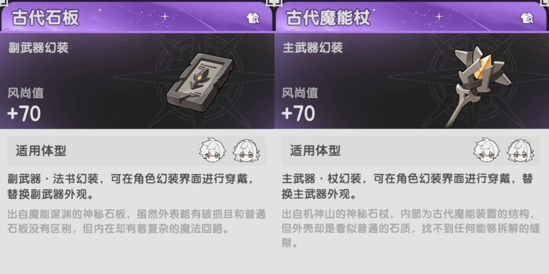 这两件分别是来自魔能邃渊的石板和来自机神山的权杖,同为武器,直接对比就可以看出和现代魔能机械存在差异,但也能看出些许渊源。可惜的是这二者并没有比较相似的同类职业的参考道具。