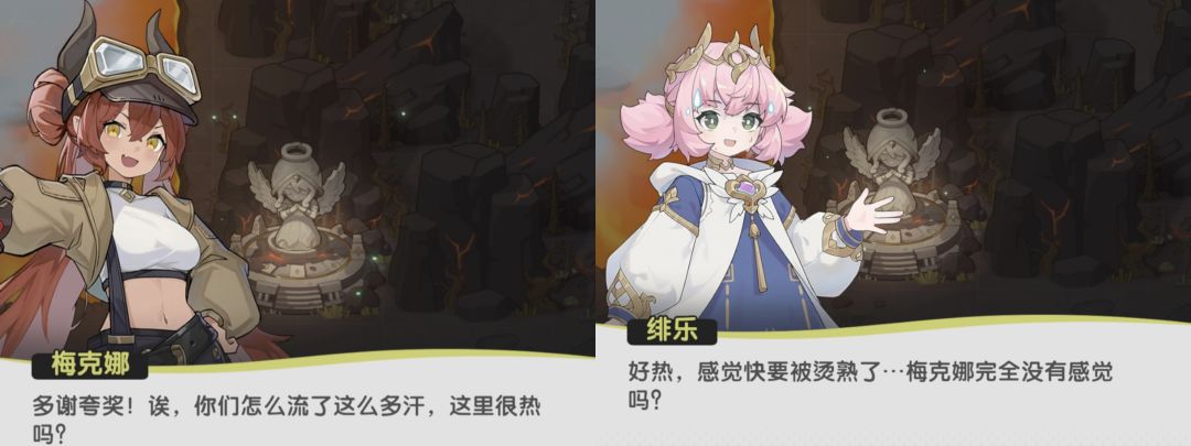 在获得「烈焰之印」后,冒险者和绯乐要前往熔融山脉的古老试炼场调查,途中路过一片绿洲(山之国13女神像处),可以遇到米特,就会触发以上对话。