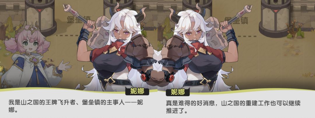 同样在我们进入堡垒镇的剧情中,妮娜也有提到山之国的重建,这个说法也恰好验证了这一点。