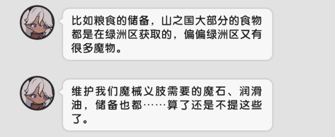 魔物又占据绿洲,导致了前面妮娜通讯中提到的山之国食物短缺。