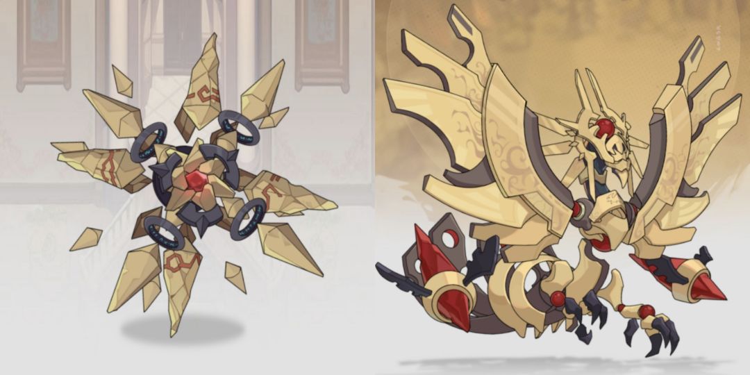 而烈焰凤凰的风格也和其他的构装体风格迥异,除了基础的配色和晶源比较相似以外,基本没有更多相似的地方,顶多能看出来是一个类型的构装体。