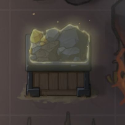 举个例子吧,不知道各位是否还记得,我们在山之国开荒主线的时候会遇到一些矿箱,其中有一些是纯黑的粗炼石,还有一些是带有一点金黄色的罗拉矿石的,就像下面这张图这样。