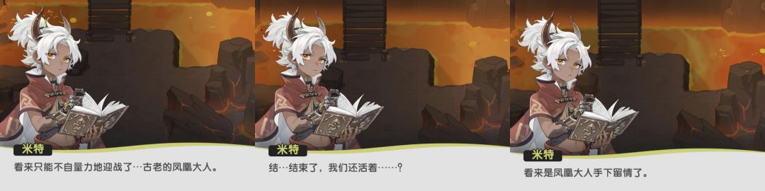 米特和卡尔前来阻止冒险者召唤烈焰凤凰,但还是晚了一步,只能和古老的凤凰斗过一场。以米特的反应来看,凤凰应该是非常强大难以对抗的,但好在凤凰放水了,战斗胜利,凤凰离去。