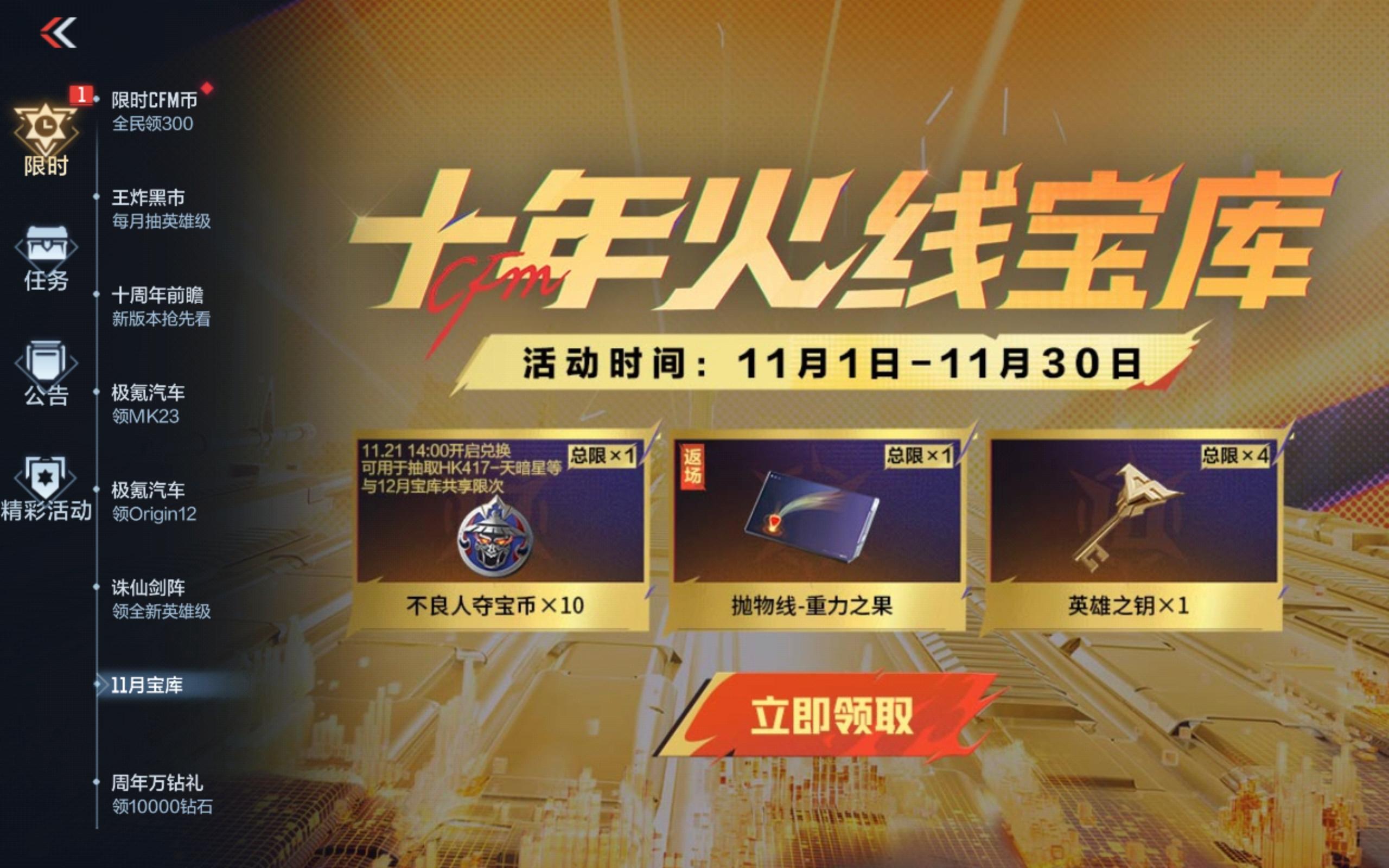 十周年庆的福利矩阵堪称无死角覆盖,别犹豫,抓住十周年的专属机遇,把所有奖励都“薅”到手!祝各位CFer在十周年福利活动中福利拿到手软!