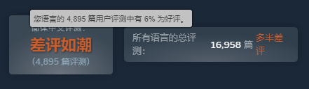 搜打撤游戏最严厉的父亲上线Steam,欧版价格,仅有白边和两个冤种版,开局就炸服,狂砍6%好评率(简体中文),低于三国杀的10%。