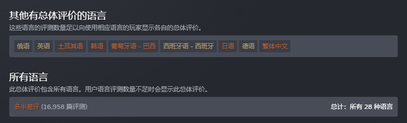 塔科夫的全语言好评率还有30%,不过值得注意的是,本次并非环大陆好评,就连俄语的好评率也只有47%,还不如德语的52%。