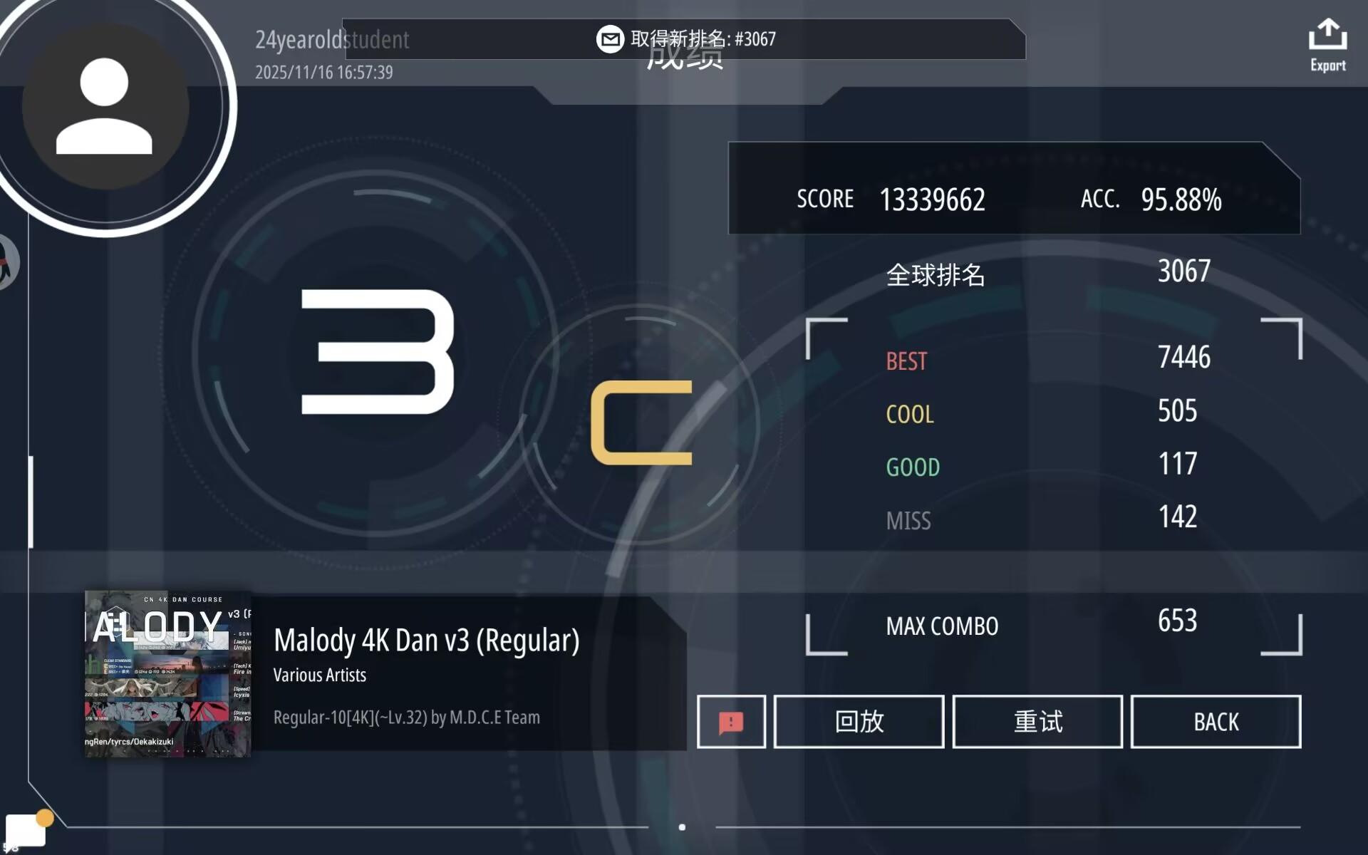 【纪念4k常规段毕业】Malody 4k v3 10dan已无暂通过!!!