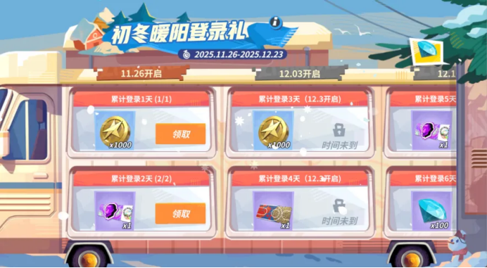 惊喜福利不停歇,[初冬暖阳登录礼]活动将于11月26日接力登场。届时每周只需登录两天,就能领取群星汇集券、潮人券、钻石,拉满你的球员养成乐趣。