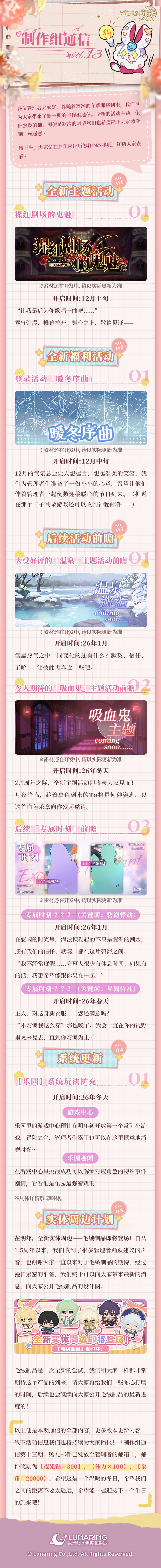 各位管理者大家好,伴随着凛冽的冬季即将到来,我们也为大家带来了新一期的制作组通信。全新的活动主题,依旧熟悉的他,即使是寒冷的时节我们也希望能让大家感受到一丝暖意~