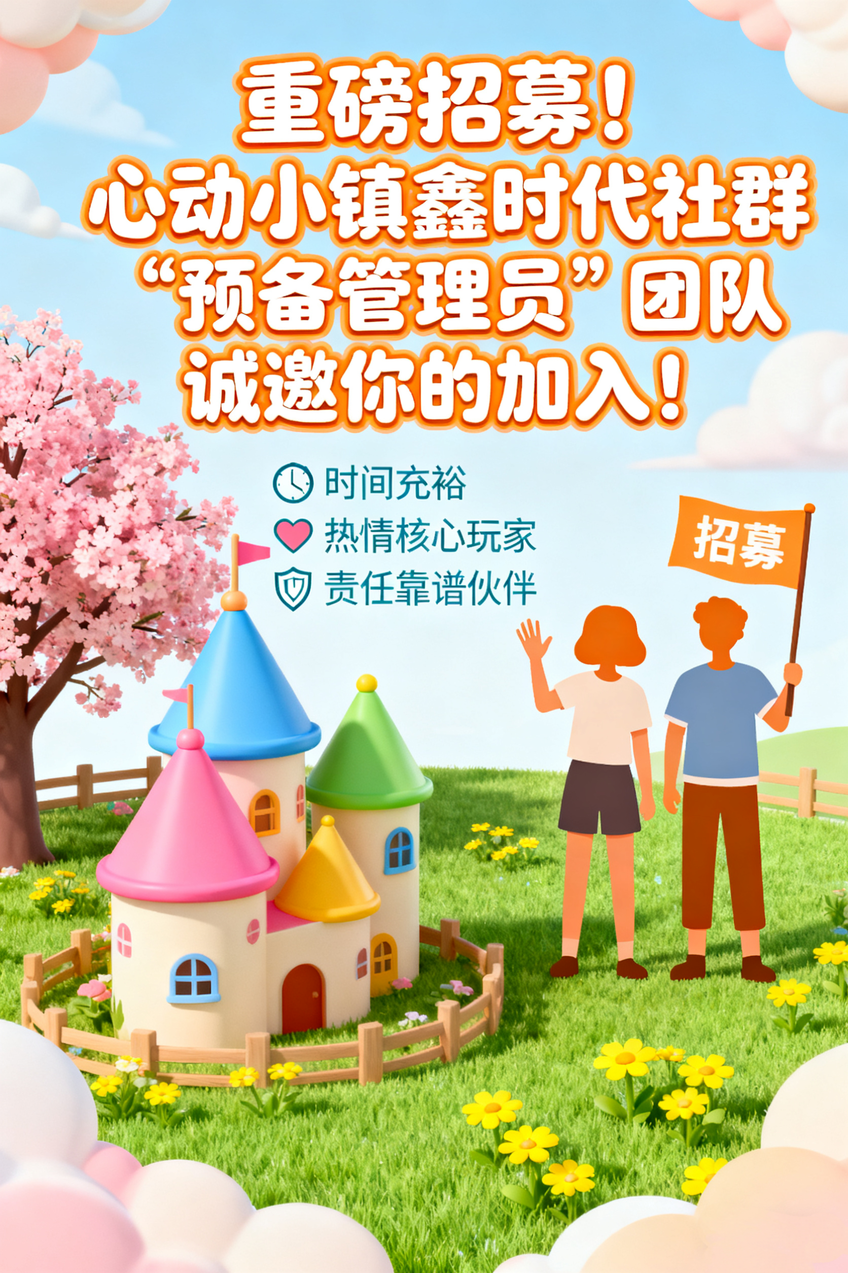 重磅招募!心动小镇鑫时代社群/频道“预备管理员”团队诚邀你