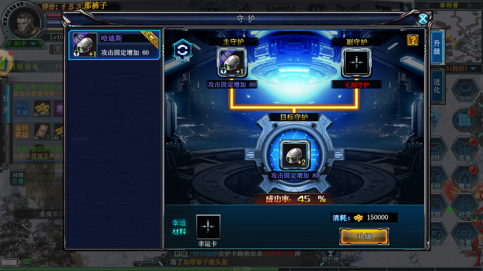 - 进化机制:使用碳精(提升物防)、绿晶石(提升生命)、黑晶石(提升魔防) 三种材料,概率添加额外属性,每种材料在同一守护仅能添加一种属性,不可重复;进化成功属性等级提升,失败则降低。