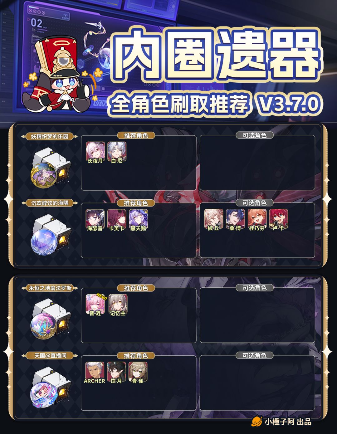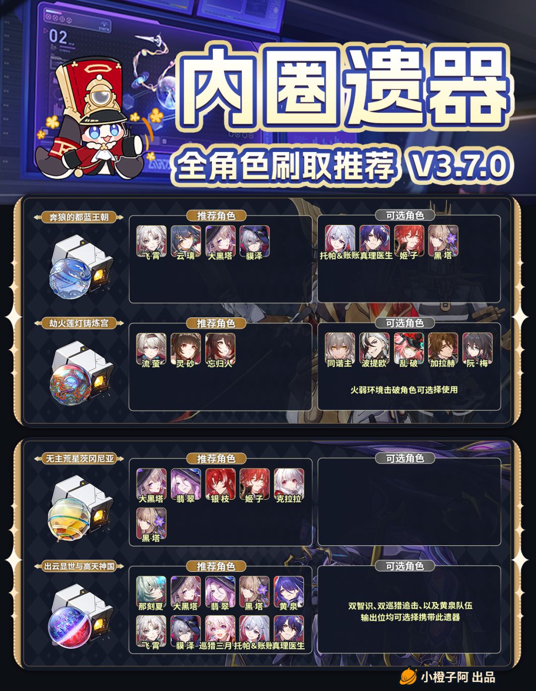 趁着「位面分裂」双倍刷取活动开启,橙子整理了一份内圈遗器刷取攻略,大家可以看看自己想养成的角色刷取什么遗器~