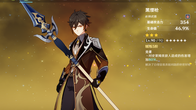 重做后的钟离,在武器层面有更多的选择,如果只做辅助,完全可以用三星史莱姆枪——黑缨枪,堪称性价比之王,或者说西风长枪,为全队充能,完胜“专武”。