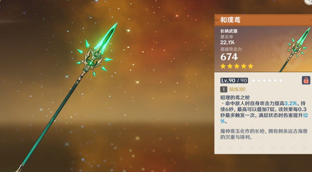 如果想做副C或者“武神钟离”,还可以选择护摩之杖,提升生命值和攻击力,且副词条给的是高贵的暴击伤害,甚至就连常驻武器和璞鸢,在输出层面都碾压贯虹之槊……
