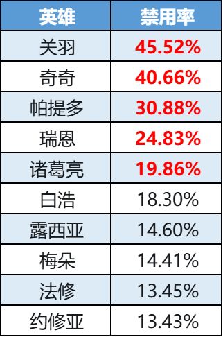 禁用率榜-奇奇闪现登榜,美杜莎遗憾下榜