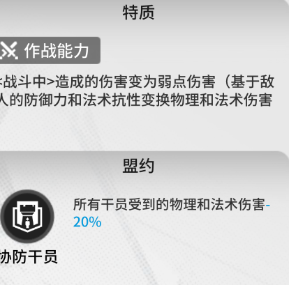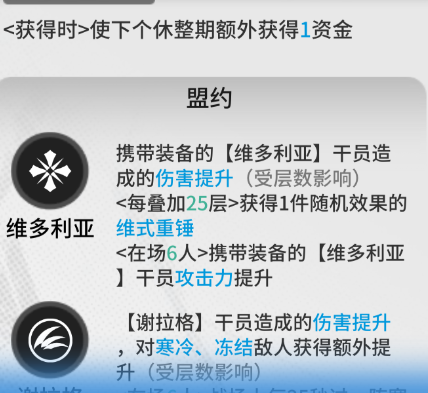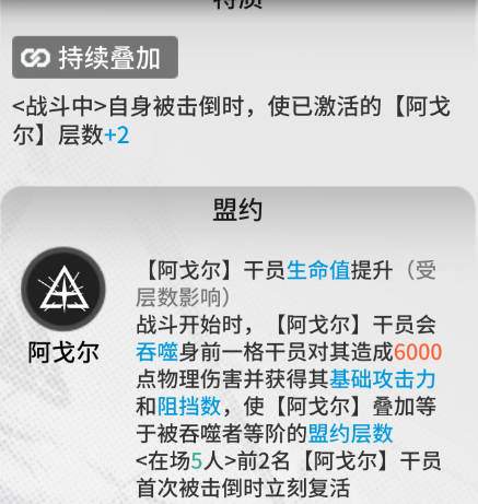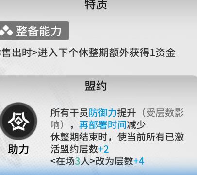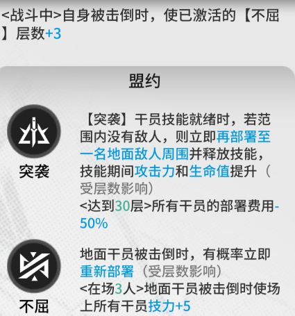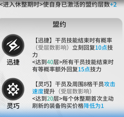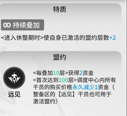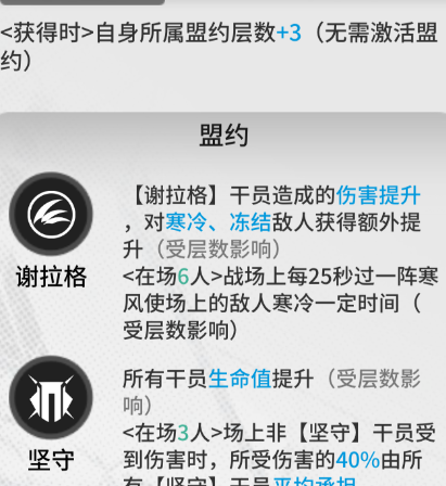 特质比较可有可无,一般需要盾才拿,玩谢拉格的话因为叠层刚需初雪+灵芝,而且三阶有很多谢拉格干员能拿,导致完全没必要提前一阶优先拿角峰激活盟约。
