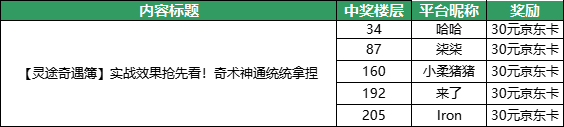 感谢各位仙友积极参与!让我们恭喜以下仙友获得本次活动奖励!结果公示如下: