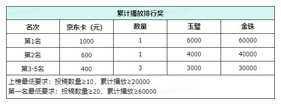 注意:创作者在多个平台分发相同稿件,仅参与一个平台的排行奖评选,默认发放创作者所获奖励最高的平台奖励。此外,仅统计有效稿件播放量,无效稿件的播放量不予统计。