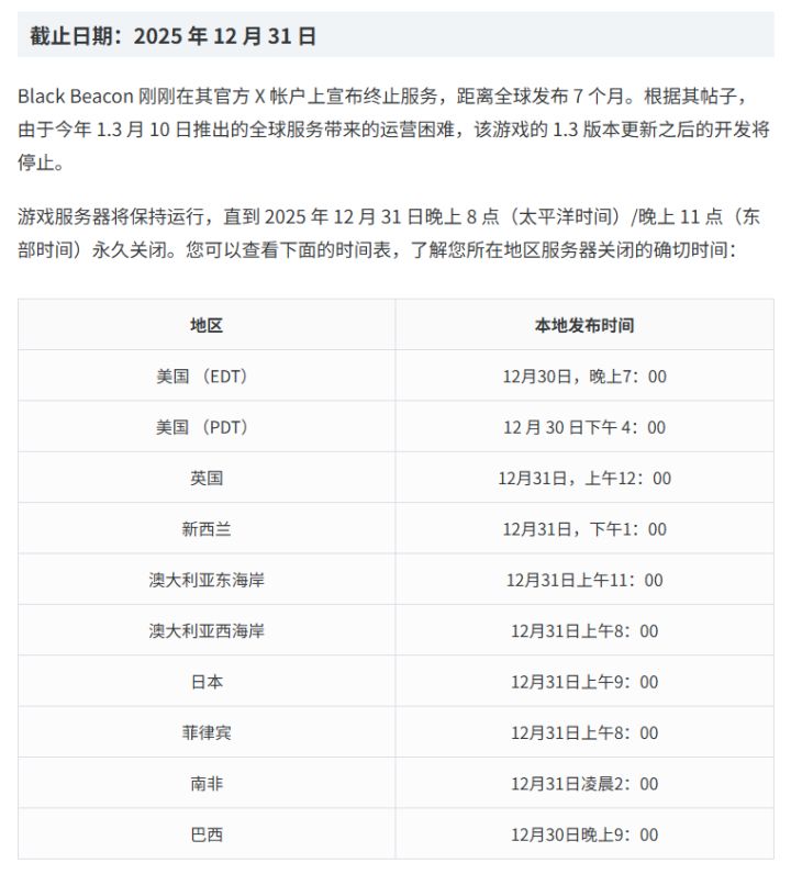 【快讯】黑色信标国际服停运,国服前景堪忧