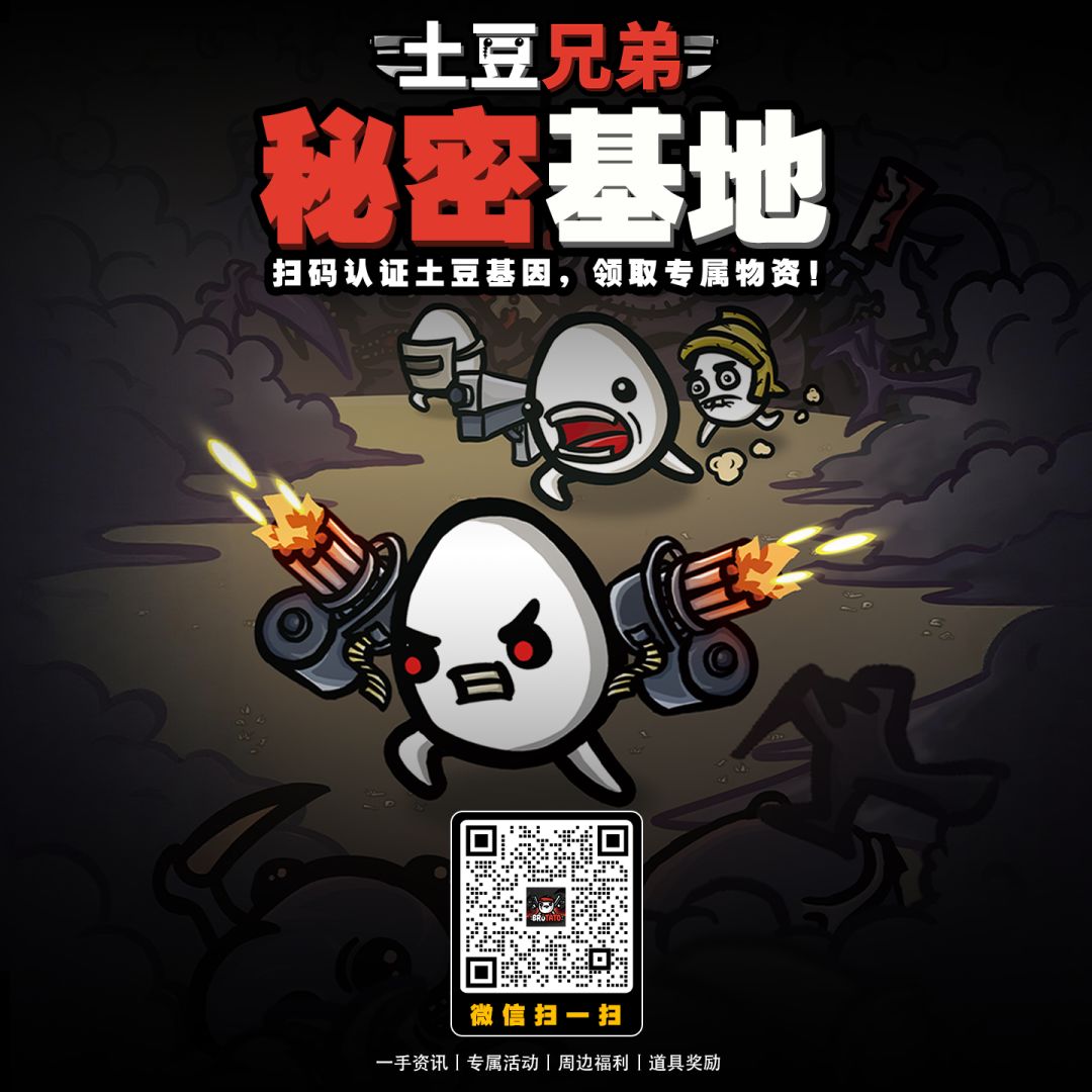 我们开设了《土豆兄弟》社群,邀请您登陆土豆秘密基地。在这里您将会收到游戏的最新动态,也会有专属的海量互动奖励(京东卡、CDK、限量周边等)。