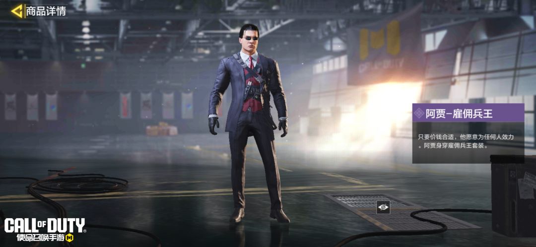阿贾-雇佣兵王身着黑色条纹西装,面戴黑超墨镜,很酷也很不好惹。看到他手中的SPR208-五彩金龙和Cordite-龙焰冲天了吗?想要挑战他的敌人,都得掂量掂量!