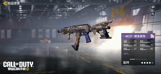 在“镀金装饰”奖池中,可获得最终大奖:史诗级武器AK117-镀金装饰。